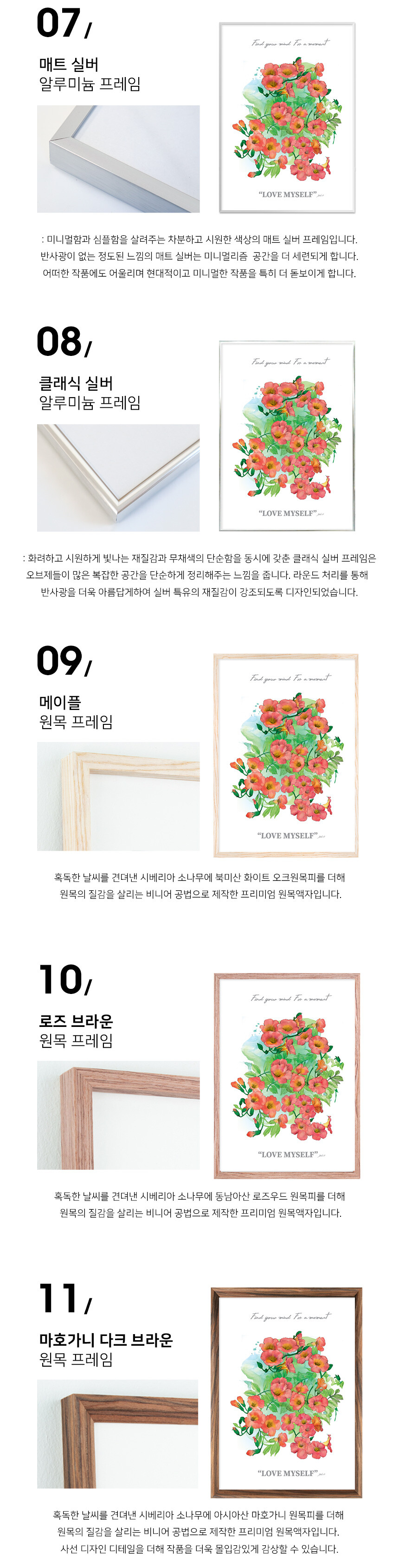 액자 색상 선택선택하세요.마호가니 다크 브라운 원목 액자