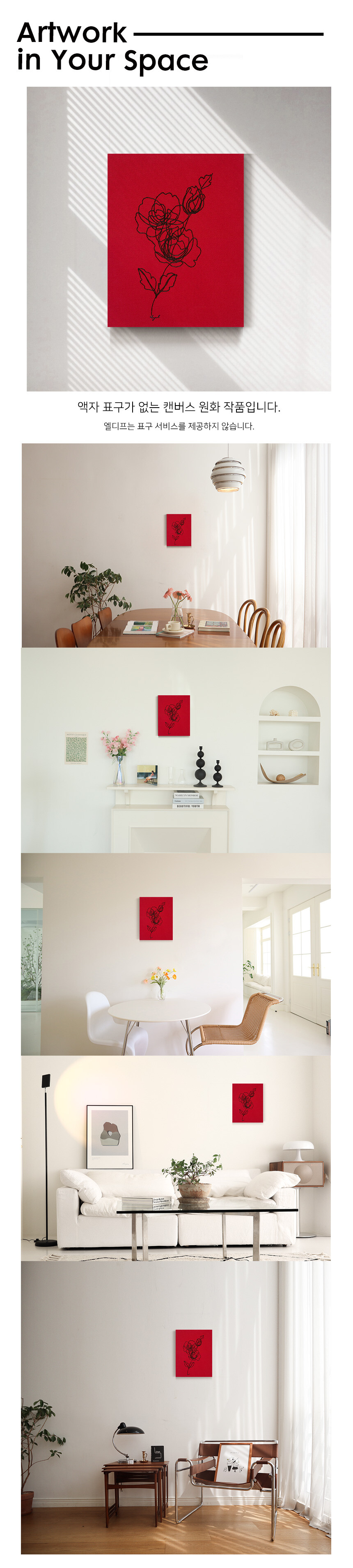 붉은 천에 마치 물들 듯, 허공에서 자유롭게 피어난 장미 꽃은 모두의 자화상이 되기도 합니다. 더 아름답게, 더 화려하게, 더 멀리까지 피어나고 싶어나는 현실 속 바람들이 모여 피어났습니다. 누군가에게는 삶의 원동력이 될 수도, 누군가에게는 집착이 되어 무거운 짐이 될 수도 있는 마음의 장미인 셈입니다.