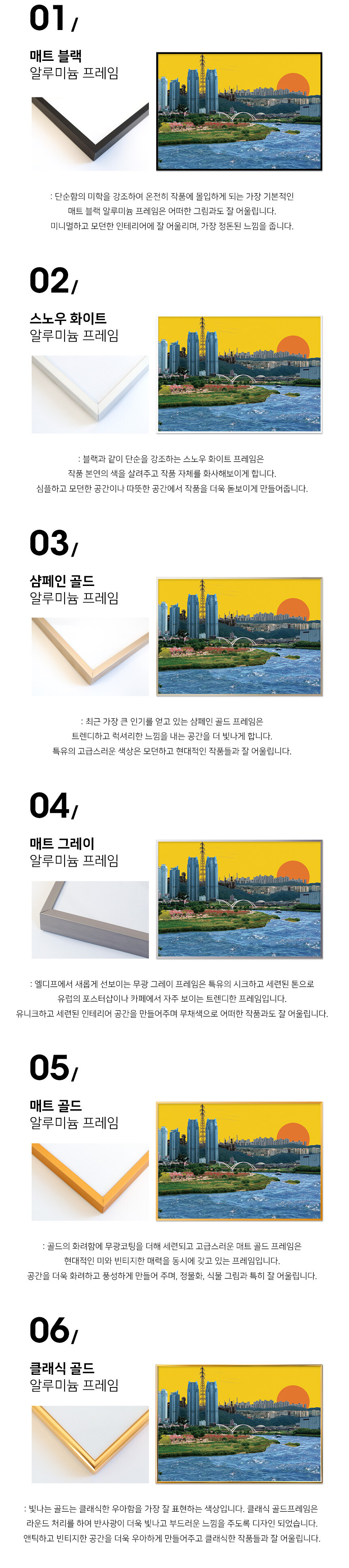 매트 골드 알루미늄 프레임