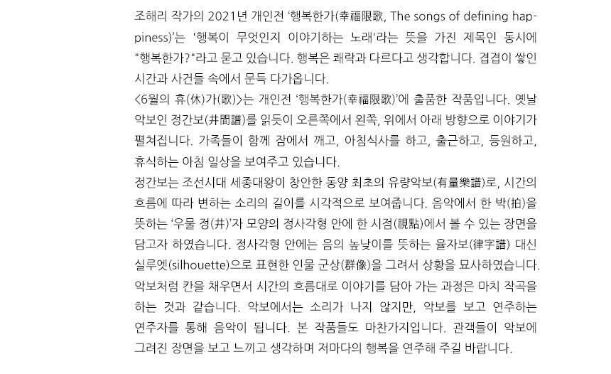6월의 휴(休)가(歌) - 조해리 작가