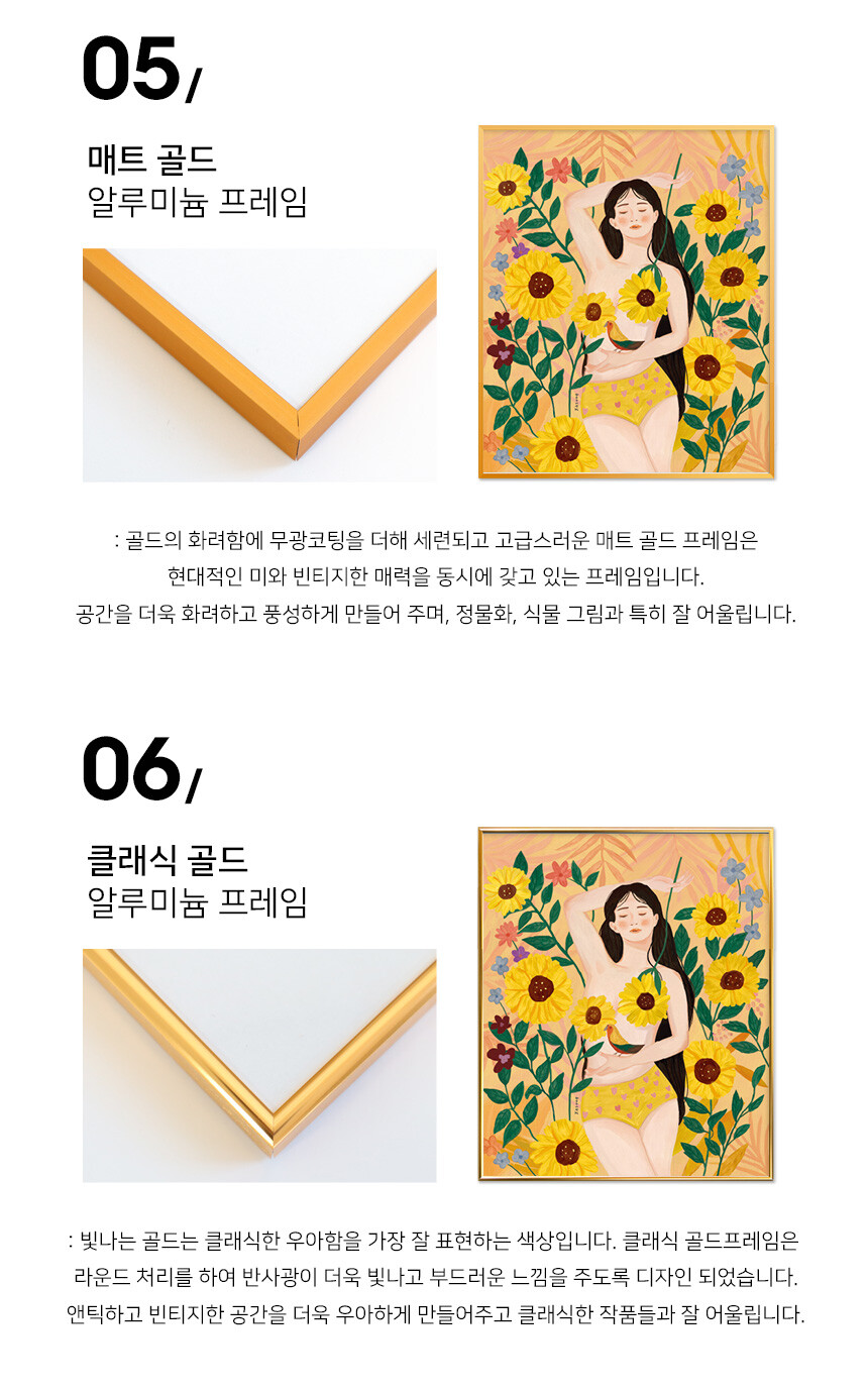 매트 골드 알루미늄 프레임