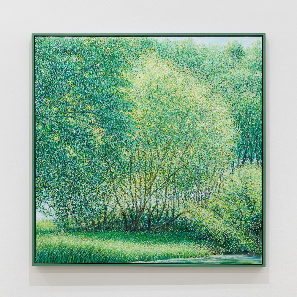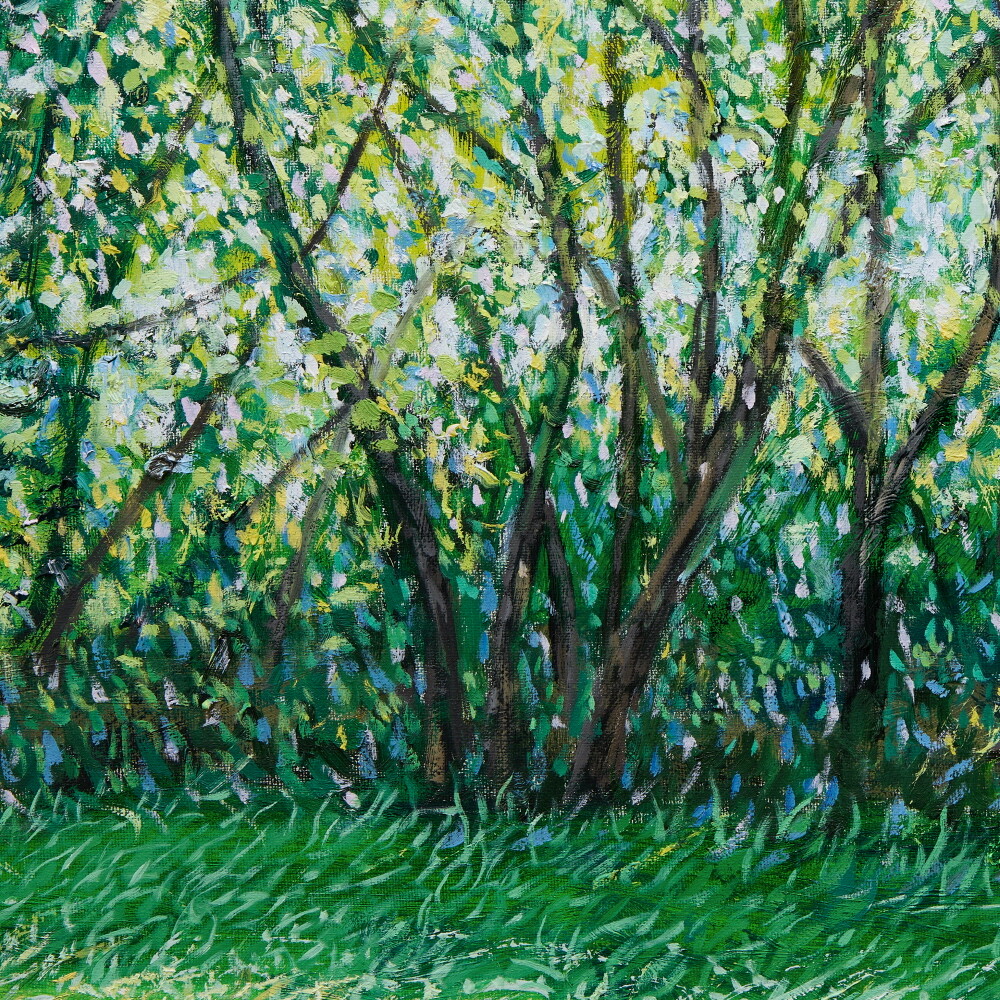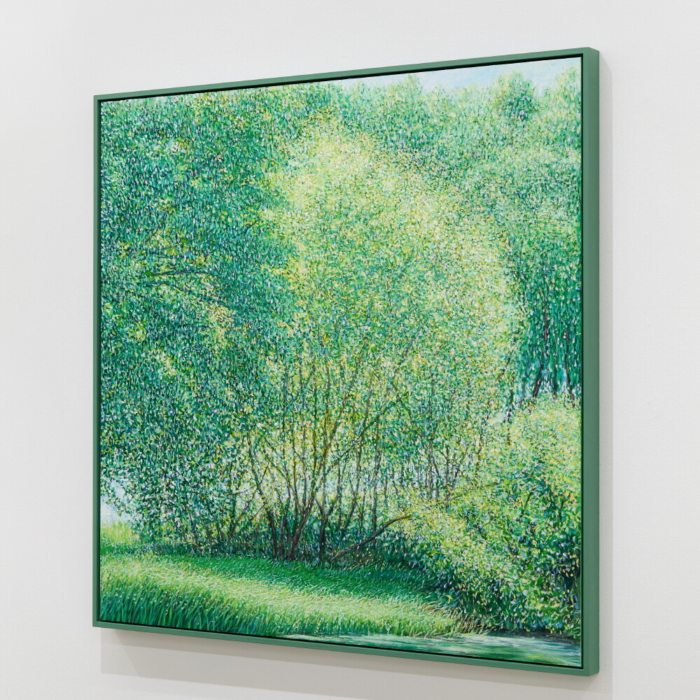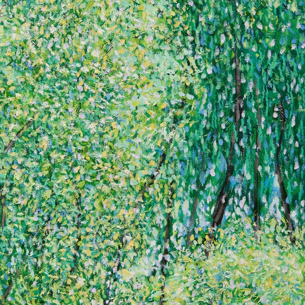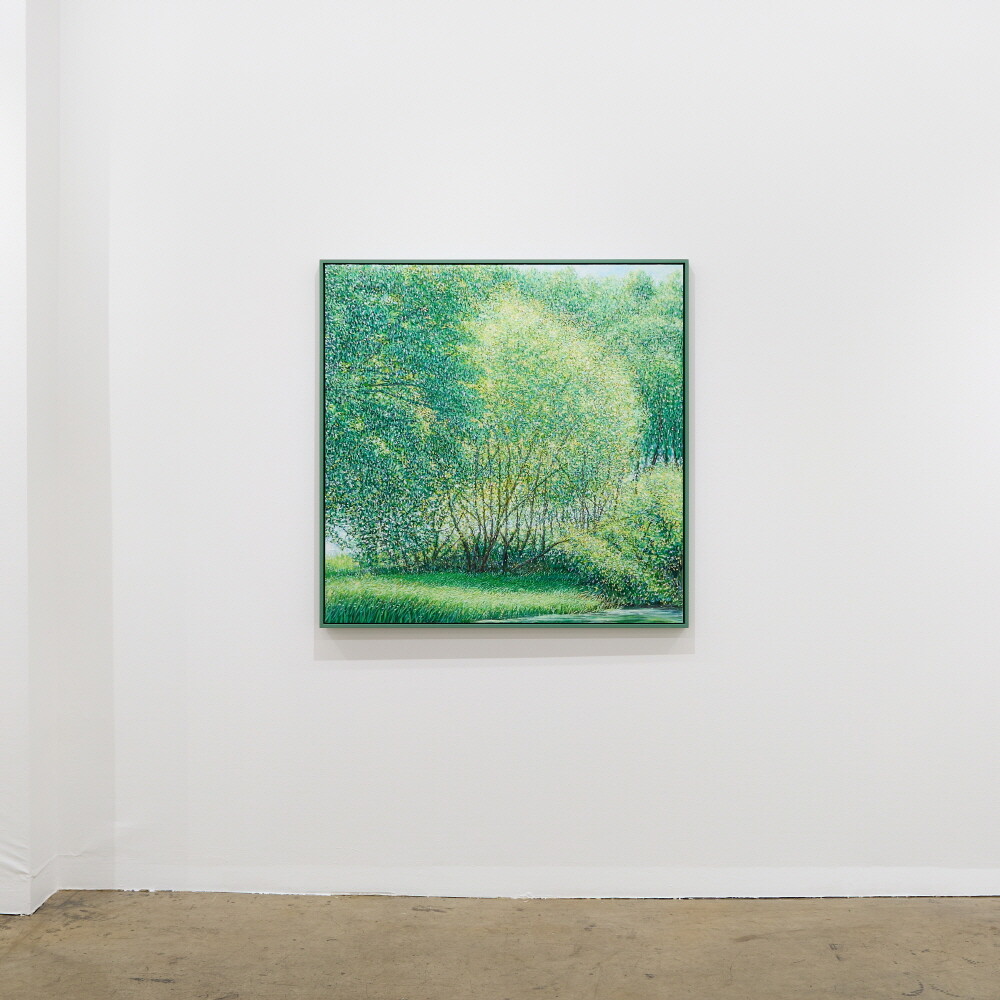 자연과 풍경을 소재로 작업하고 있습니다. 그릴 것도 많고 느낄 것도 많은 대상이며, 항상 변화하고 새롭습니다. 작품을 만들면서 가장 크게 염두에 두고 있는 것은 자연(장소)을 처음 마주하고 그리고 싶은 충동이 일어났을 때 그 느낌과 감정을 끝까지 유지하며 이어 나가는 것입니다. 자연이 주는 시각적 다양함과 자연스러움, 숲 안에서 보았을 때 와 숲 밖에서 보 모습의 차이, 그때의 상황에 따라 다양하게 빛나는 나무들의 조화를 보며 정서적 감동을 느끼게 되고 캔버스에 재현하고자 하는 충동이 일게 되는 것입니다. 카메라를 이용하여 현장 스케치를 하지만 사진 자료는 그 순간(감정을 느낀)을 떠올리는 역할이 큽니다. 저의 작품은 자연을 그대로 사진처럼 그대로 옮기는 것보다는 자연을 보고 느낀 개인적인 내면의 감정 세계와 심리적으로 본 것을 그리는 것입니다. 작품을 크게 나눠 보면 숲 인상과 자연 인상, 아카시아로 나눌 수 있겠습니다. 숲 인상은 자연(숲)을 마주하고 바라보았을 때를 그린 것이고 자연인상 은 자연 안으로 들어가서의 느낌을 그린 것이라 할 수 있습니다.아카시아 시리즈는 아카시아 잎의 평면적이고 패턴 적인 인상을 표현한 작품입니다. 기존의 자연인상 보다 더 숲(자연) 안으로 들어가 클로우즈업 된 이미지라 생각한다. 자연인상을 그릴 때 잎을 표현한 물감 터치 (점묘법)하나하나를 자연 안에서 만났다는 생각이 들어 아카시아를 그리게 되었습니다. 나 (작가) 만의 시각적 경험에서 본 자연을 그려낸 연작으로, 시각화하기 어려운 인상적인 느낌을 표현하기 위해 추상화된 표현방식도 사용하였습니다. 붓으로 수많은 터치를 중첩하면서 작업을 해 나갑니다. 저는 자연이 연출하는 감동을 재현하기 위해 자신이 익혀온 표현법(아카데미즘), 예를 들면 정통 구상에서의 원근법이나 투시 기법, 상투적 구도 등을 최대한 자제하거나 의도적으로 무시합니다. 그리고 다양한 시도와 자유로운 방법으로, 규칙을 떠나 셀 수 없을 만큼 중첩되는 붓질과 터치를 통해 작가 자신이 느낀 자연의 인상은 캔버스에 드러냅니다. 은밀하게 스쳐간 온도, 향기, 바람, 느낌, 인상의 재현입니다. 자연의 공간이 주는 정서적 감정을 표현하는 것에 초점을 맞추어 최대한 회화적으로 표현하려 노력하였습니다. 작가 내면의 자연에서 받은 특별한 인상을 강조하는 나의 작품은 새로운 자연의 이미지를 창출합니다. 의식적 터치와 무의식적 터치가 쌓이면서 교차되는 어느 지점, 캔버스 안의 구성이 최대한 자연스럽게 보이는 어느 지점에서 붓을 멈춥니다.