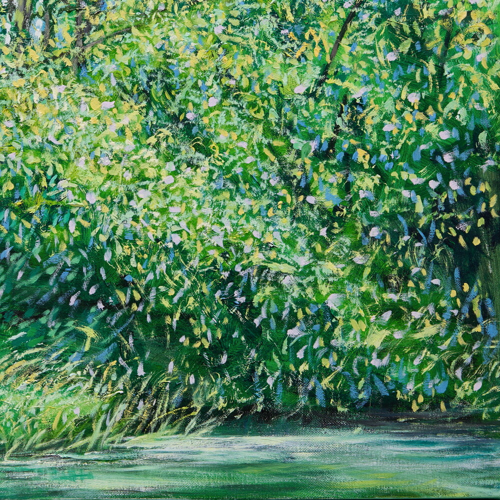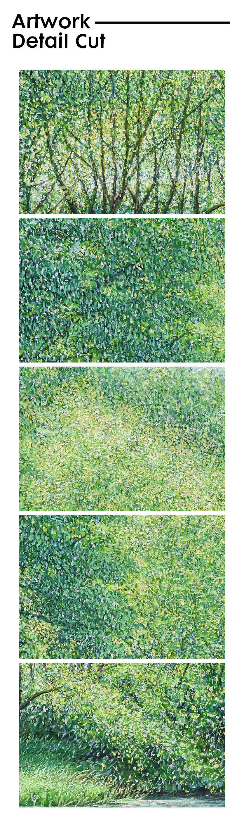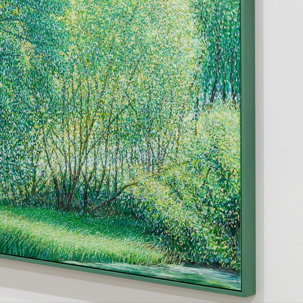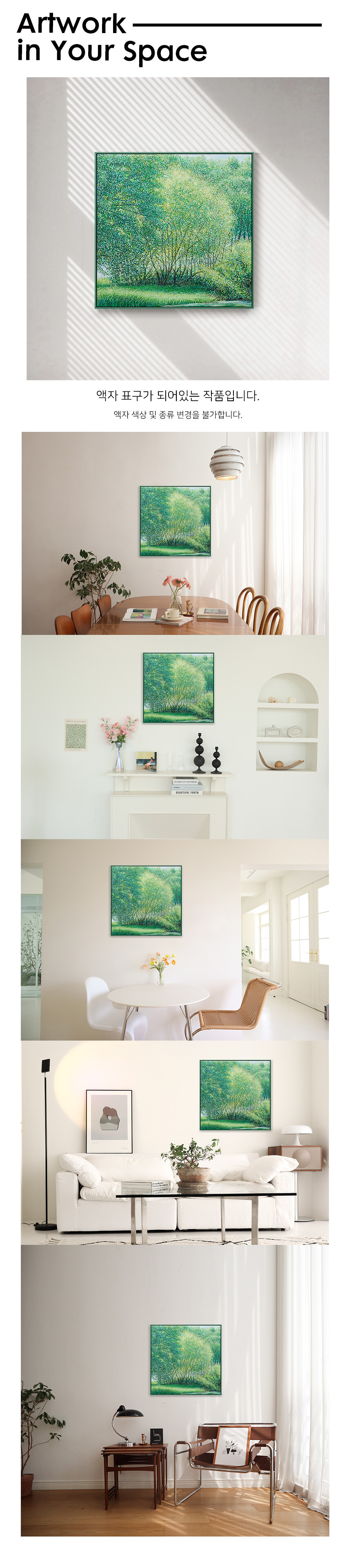 자연과 풍경을 소재로 작업하고 있습니다. 그릴 것도 많고 느낄 것도 많은 대상이며, 항상 변화하고 새롭습니다. 작품을 만들면서 가장 크게 염두에 두고 있는 것은 자연(장소)을 처음 마주하고 그리고 싶은 충동이 일어났을 때 그 느낌과 감정을 끝까지 유지하며 이어 나가는 것입니다. 자연이 주는 시각적 다양함과 자연스러움, 숲 안에서 보았을 때 와 숲 밖에서 보 모습의 차이, 그때의 상황에 따라 다양하게 빛나는 나무들의 조화를 보며 정서적 감동을 느끼게 되고 캔버스에 재현하고자 하는 충동이 일게 되는 것입니다. 카메라를 이용하여 현장 스케치를 하지만 사진 자료는 그 순간(감정을 느낀)을 떠올리는 역할이 큽니다. 저의 작품은 자연을 그대로 사진처럼 그대로 옮기는 것보다는 자연을 보고 느낀 개인적인 내면의 감정 세계와 심리적으로 본 것을 그리는 것입니다. 작품을 크게 나눠 보면 숲 인상과 자연 인상, 아카시아로 나눌 수 있겠습니다. 숲 인상은 자연(숲)을 마주하고 바라보았을 때를 그린 것이고 자연인상 은 자연 안으로 들어가서의 느낌을 그린 것이라 할 수 있습니다.아카시아 시리즈는 아카시아 잎의 평면적이고 패턴 적인 인상을 표현한 작품입니다. 기존의 자연인상 보다 더 숲(자연) 안으로 들어가 클로우즈업 된 이미지라 생각한다. 자연인상을 그릴 때 잎을 표현한 물감 터치 (점묘법)하나하나를 자연 안에서 만났다는 생각이 들어 아카시아를 그리게 되었습니다. 나 (작가) 만의 시각적 경험에서 본 자연을 그려낸 연작으로, 시각화하기 어려운 인상적인 느낌을 표현하기 위해 추상화된 표현방식도 사용하였습니다. 붓으로 수많은 터치를 중첩하면서 작업을 해 나갑니다. 저는 자연이 연출하는 감동을 재현하기 위해 자신이 익혀온 표현법(아카데미즘), 예를 들면 정통 구상에서의 원근법이나 투시 기법, 상투적 구도 등을 최대한 자제하거나 의도적으로 무시합니다. 그리고 다양한 시도와 자유로운 방법으로, 규칙을 떠나 셀 수 없을 만큼 중첩되는 붓질과 터치를 통해 작가 자신이 느낀 자연의 인상은 캔버스에 드러냅니다. 은밀하게 스쳐간 온도, 향기, 바람, 느낌, 인상의 재현입니다. 자연의 공간이 주는 정서적 감정을 표현하는 것에 초점을 맞추어 최대한 회화적으로 표현하려 노력하였습니다. 작가 내면의 자연에서 받은 특별한 인상을 강조하는 나의 작품은 새로운 자연의 이미지를 창출합니다. 의식적 터치와 무의식적 터치가 쌓이면서 교차되는 어느 지점, 캔버스 안의 구성이 최대한 자연스럽게 보이는 어느 지점에서 붓을 멈춥니다.