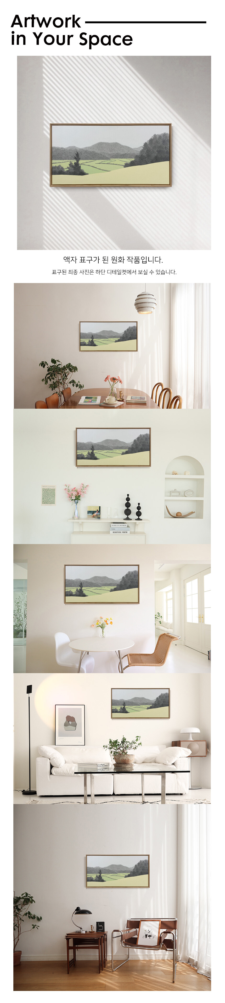 나의 작업은 일상적으로 마주치는 자연 풍경의 표정에 대한 관심으로부터 시작된다. 과거의 내가 보고 경험한 풍경 조각들을 기억 속에 쌓아두었다가, 현재의 내가 가진 감정을 더해서 새로운 공간을 만들어낸다. 생명의 시작이며 나의 존재를 온전히 느낄 수 있게 해주는 자연의 기운과 생동감을 빌어서 나의 내면의 공간을 형상화하고자 하였다.