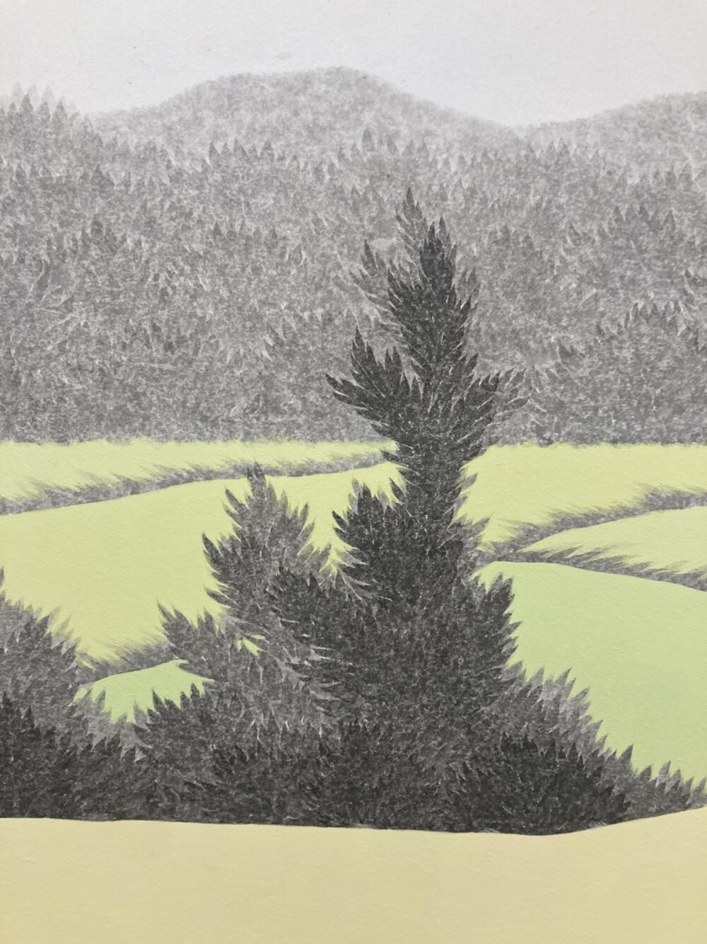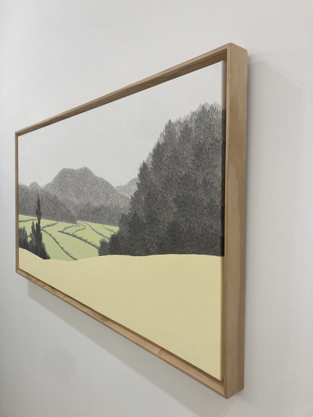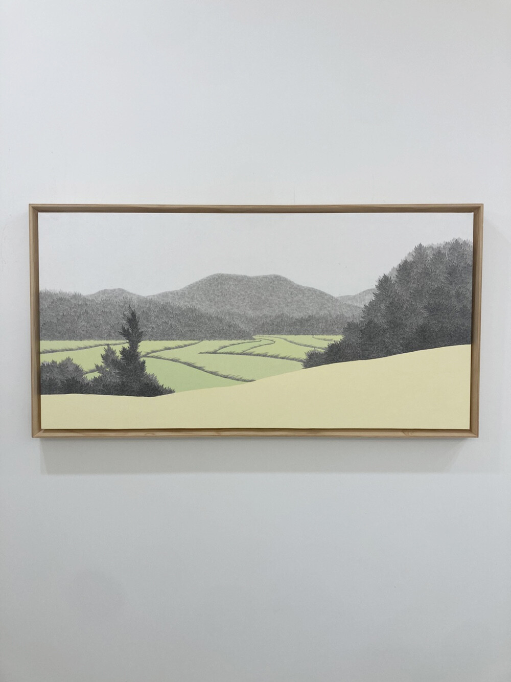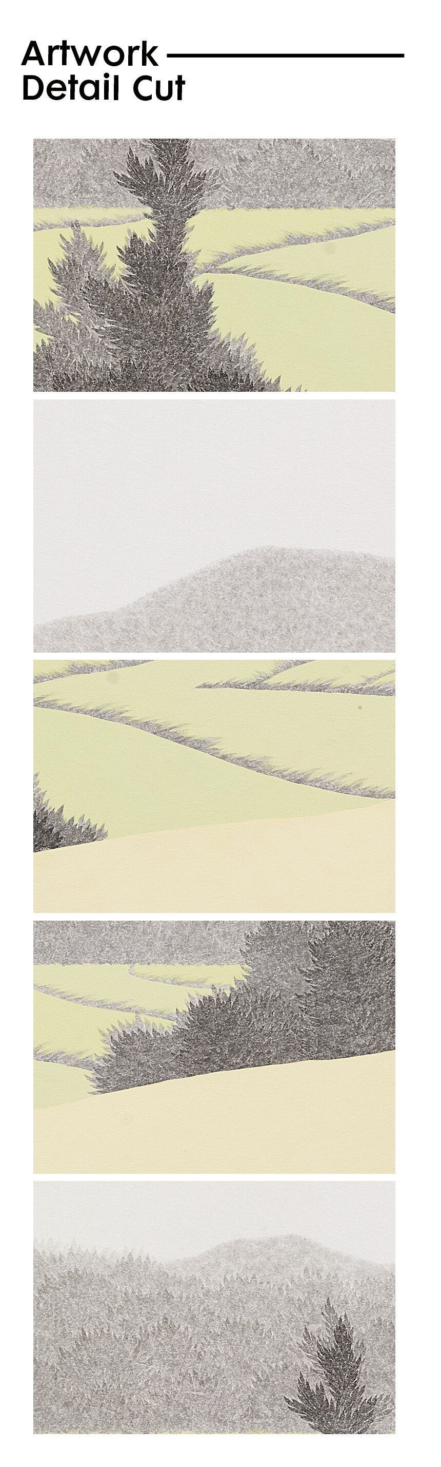수행하듯 하나하나 쌓아 올린 먹점은 나무가 되고, 숲이 되고, 들판이 되고, 산이 되어 또 다른 생명체로 발현되고, 그 위에 더한 색감을 통해 그 생명체가 담고 있는 표정을 드러내고자 하였다. 잡초와 마른 나무 무성한 흙 벌판은 오렌지빛 표정을, 침엽수 빽빽하게 자라난 사이로 살짝살짝 드러난 바위산은 겨울의 한기가 느껴지는 흰색 빛 표정을, 물을 잔뜩 머금고 햇빛 받아 더욱 선명해진 잔디밭은 초록빛 표정을 짓곤 한다. 자연이 담고 있는 표정과 그것을 바라보는 나의 감정들이 뒤섞여 새로운 세계가 만들어지고, 그 안에서 우리가 의식하지 못한 지금 이 순간에도 고요한 울림으로 쉼 없이 변화하고 있는 자연의 일부를 묵묵히, 담담하게 그려나간다.