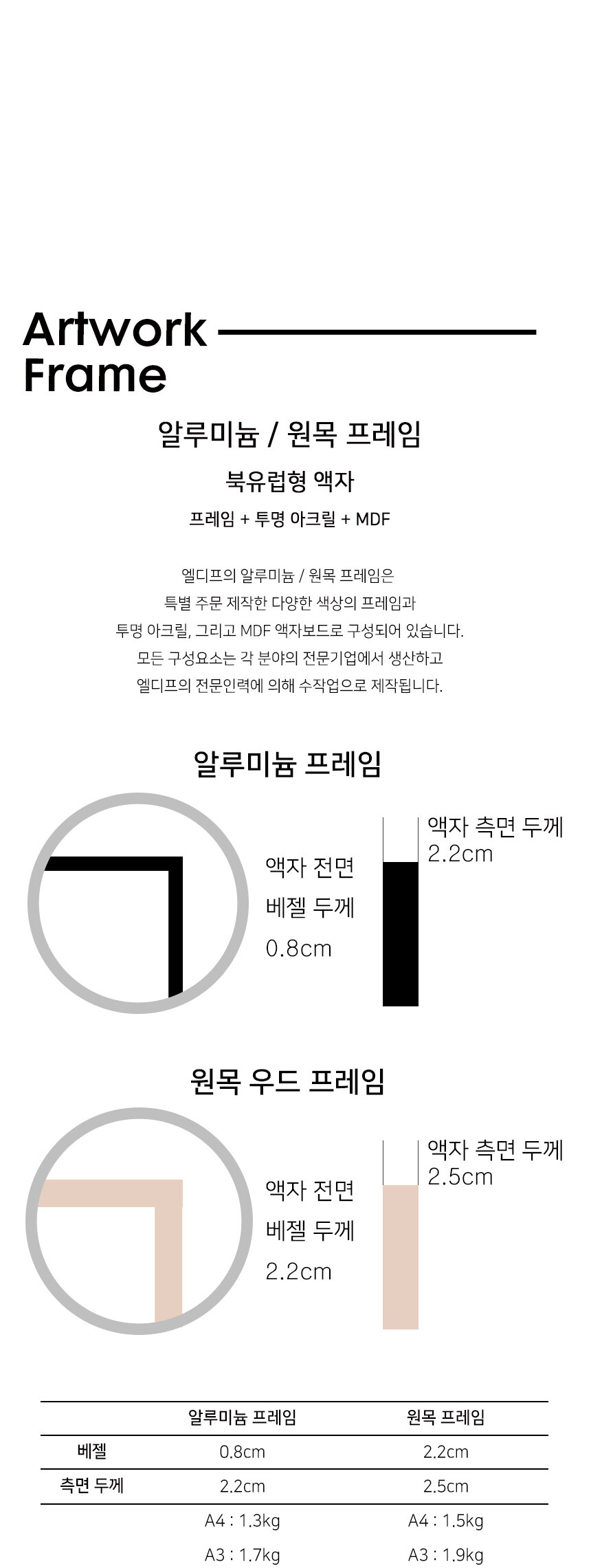 매트 골드 알루미늄 프레임