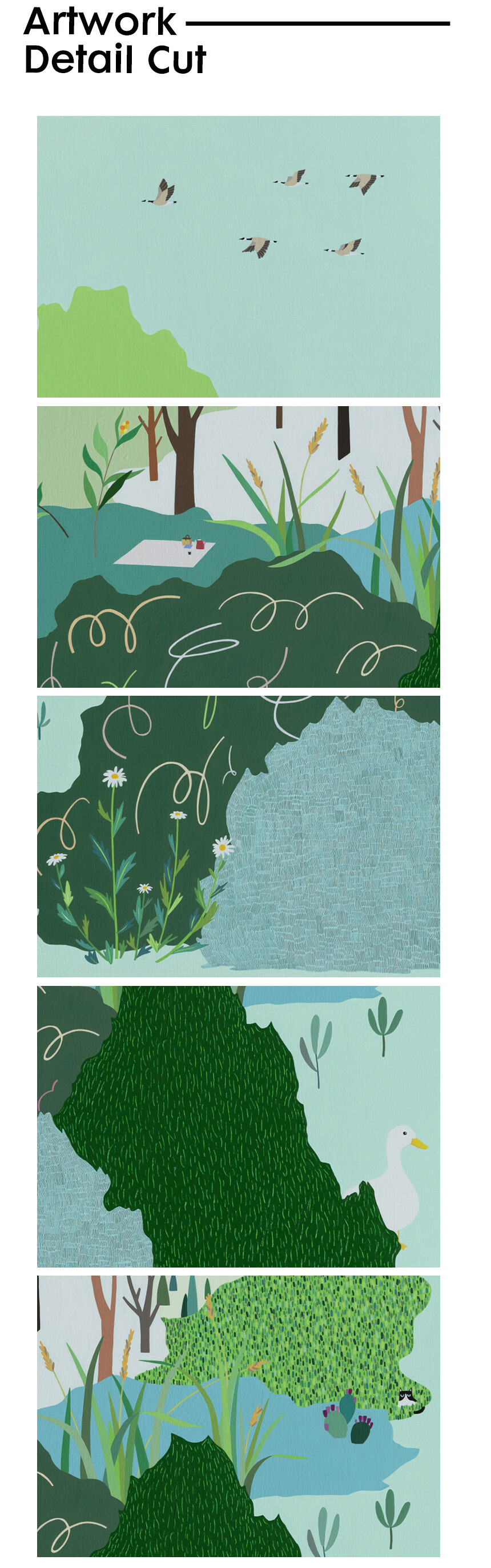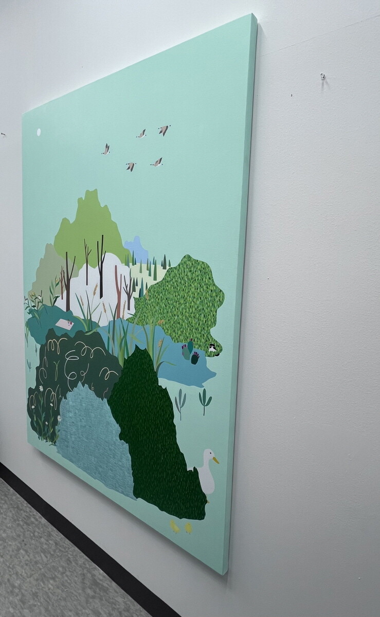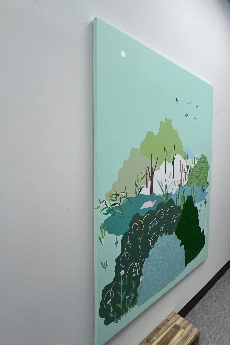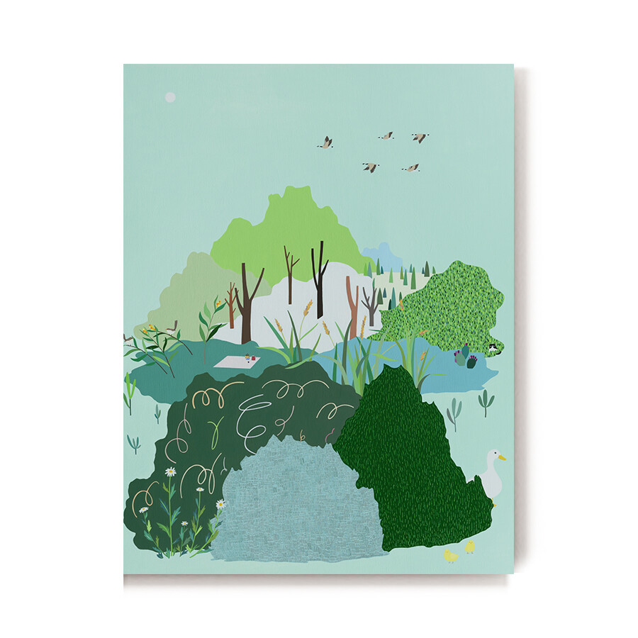 어디든 앉아서 쉴 수 있는 들판과 곳곳에서 볼 수 있는 동식물을 그렸습니다.
