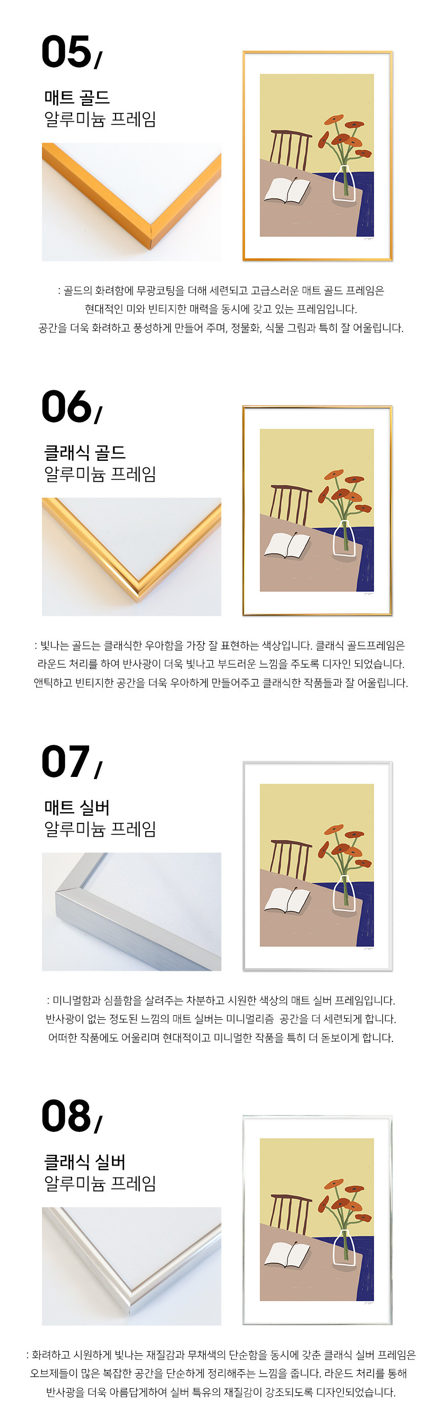 매트 실버 알루미늄 프레임