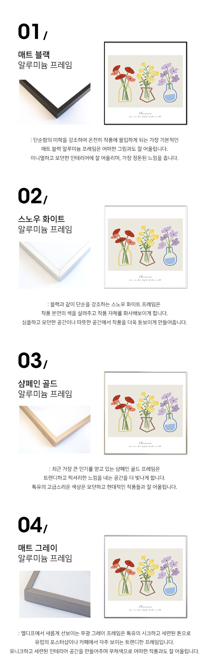 매트 실버 알루미늄 프레임
