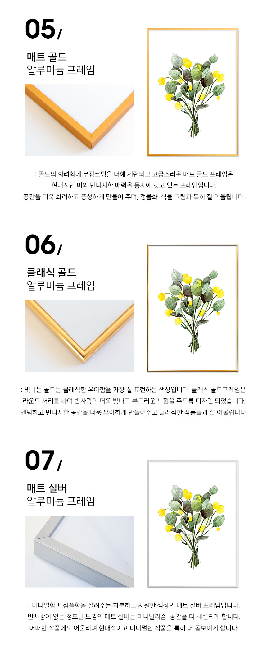매트 골드 알루미늄 프레임