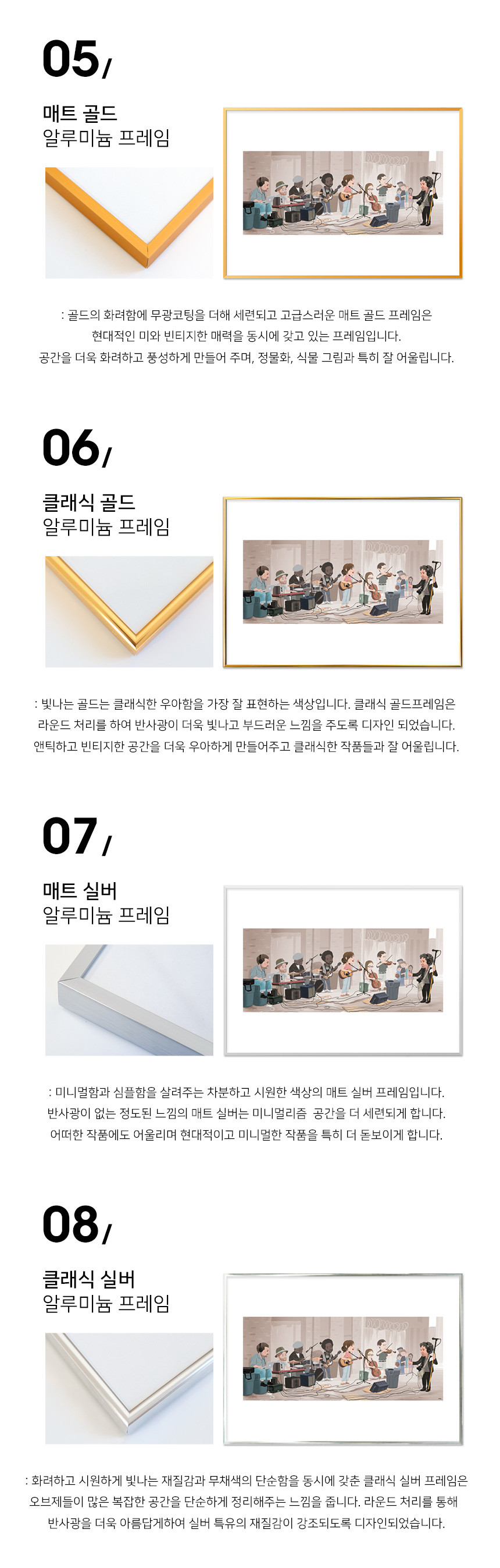 매트 골드 알루미늄 프레임