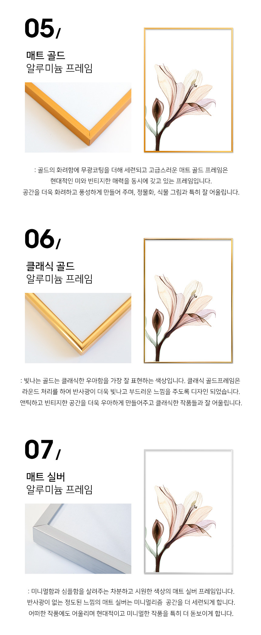 매트 실버 알루미늄 프레임