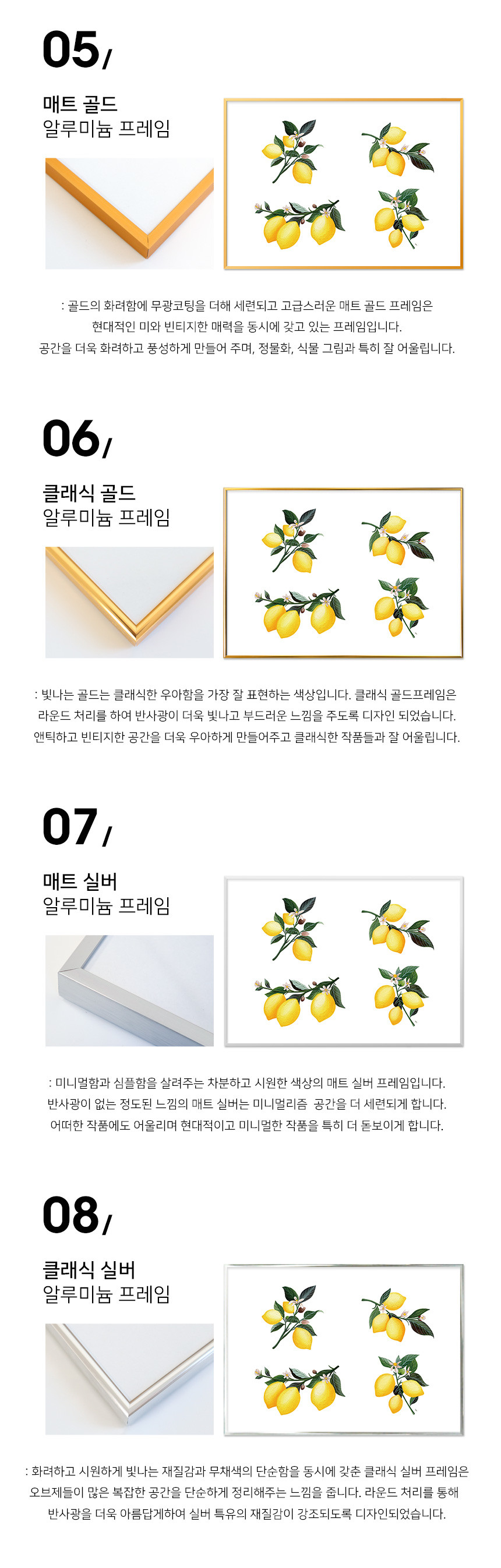 매트 실버 알루미늄 프레임