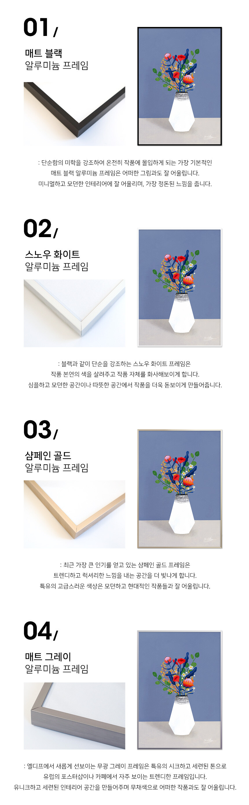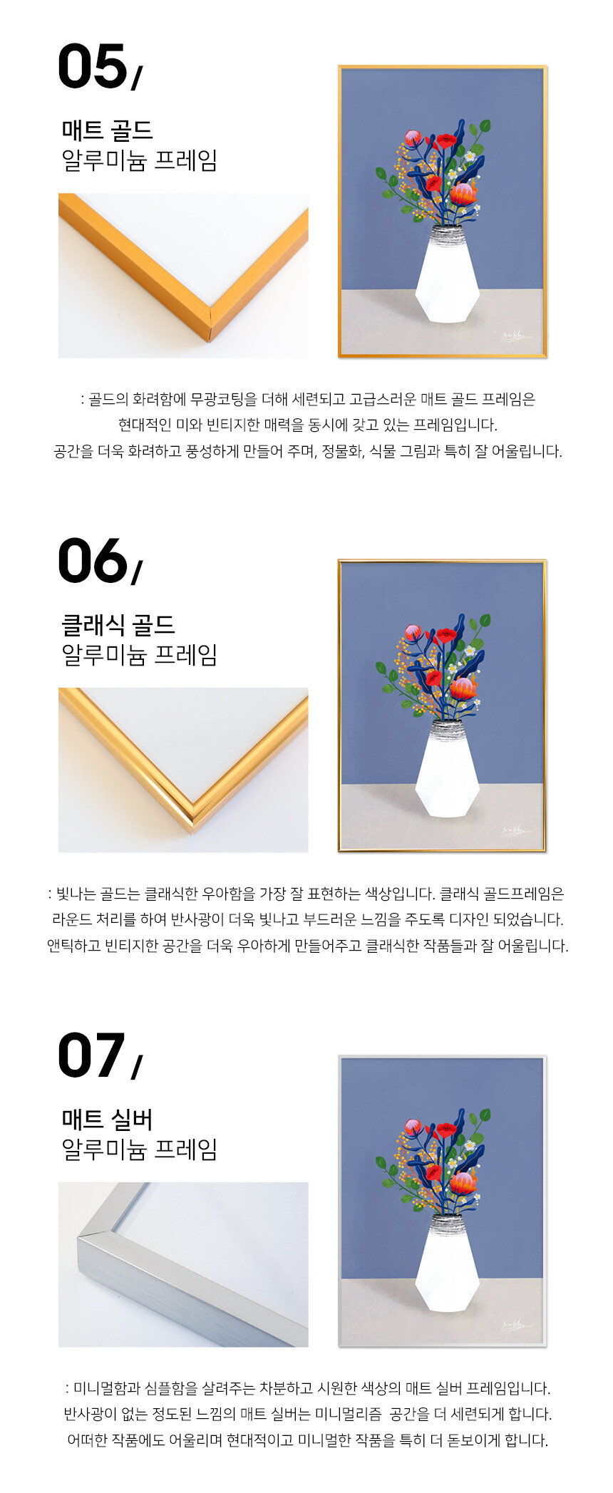 매트 실버 알루미늄 프레임