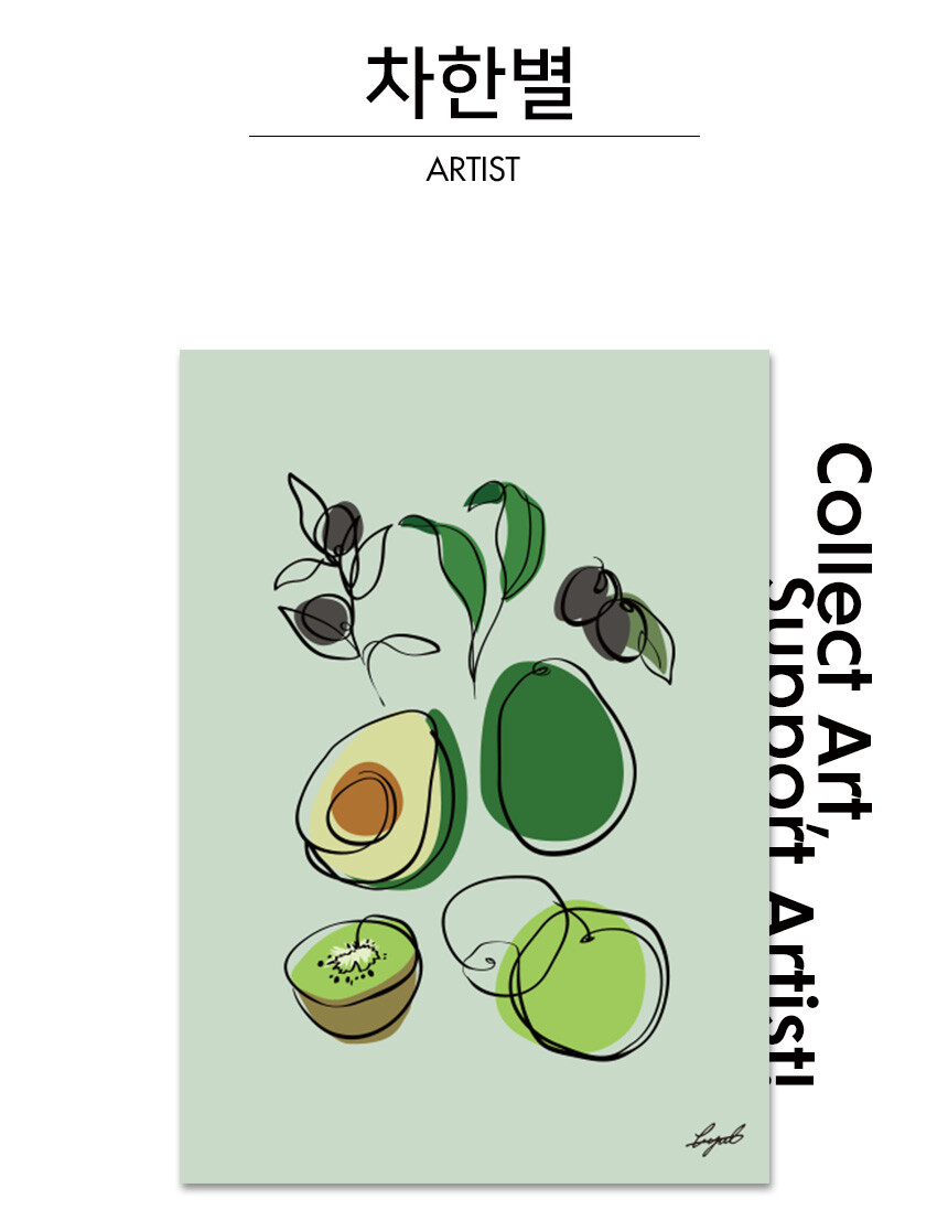 [지인X엘디프] Green, 차한별 작가 미니멀 모던 원라인 드로잉 에디션 작품